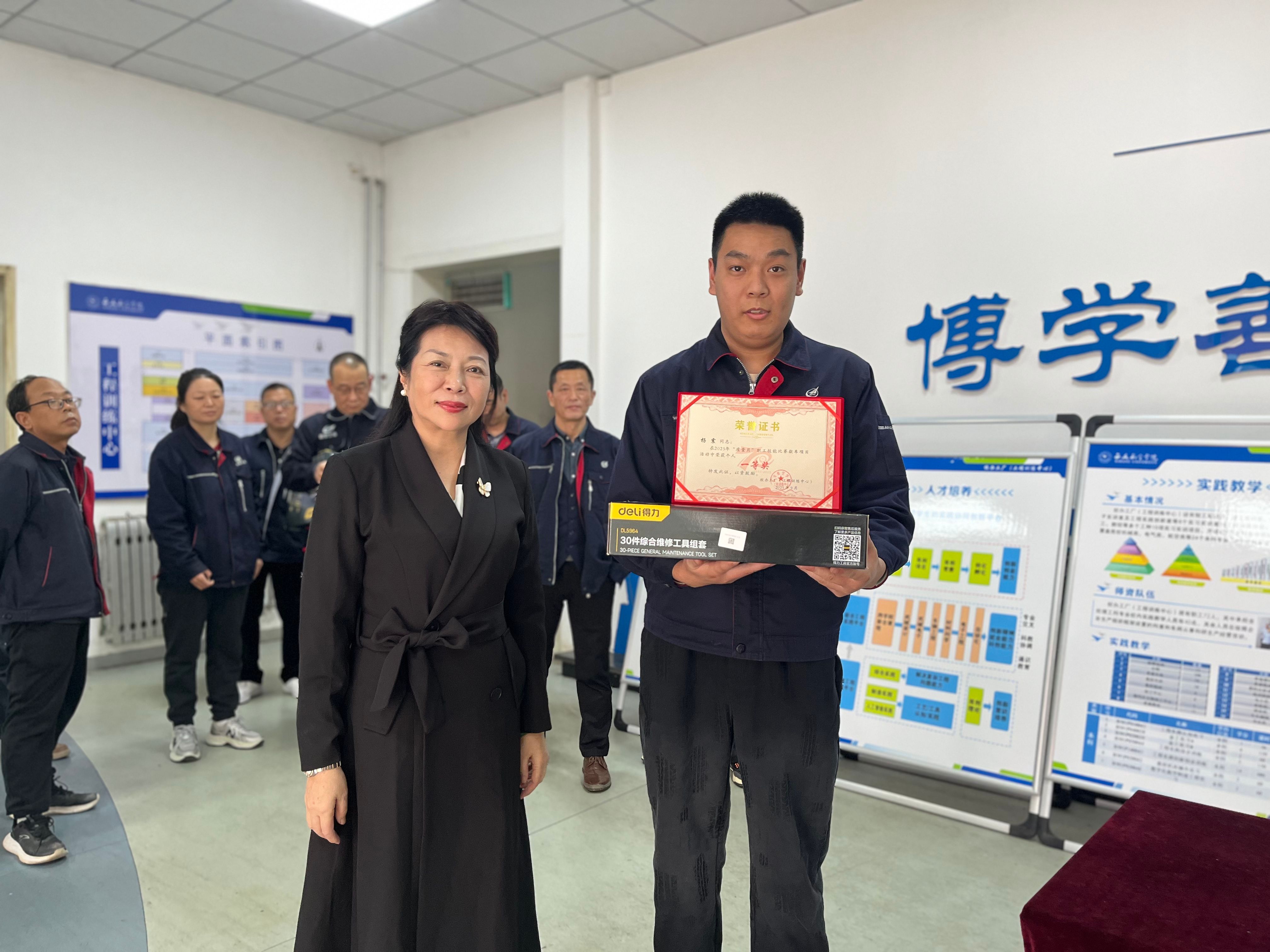 为进一步提升职工专业技能水平,展现职工职业素养,以良好风貌助力建校70周年,由校工会主办、工厂办公室与工厂分会联合承办的2025年职工技能比赛在阎良校区顺利举行。历经两周多的激烈角逐,圆满完成各项比赛。10月14日,在阎良校区举行颁奖仪式。校工会主席陈冬梅和杨琳主任受邀出席仪式并为获奖选手颁发荣誉证书与奖品,仪式由副书记郝大鹏主持。