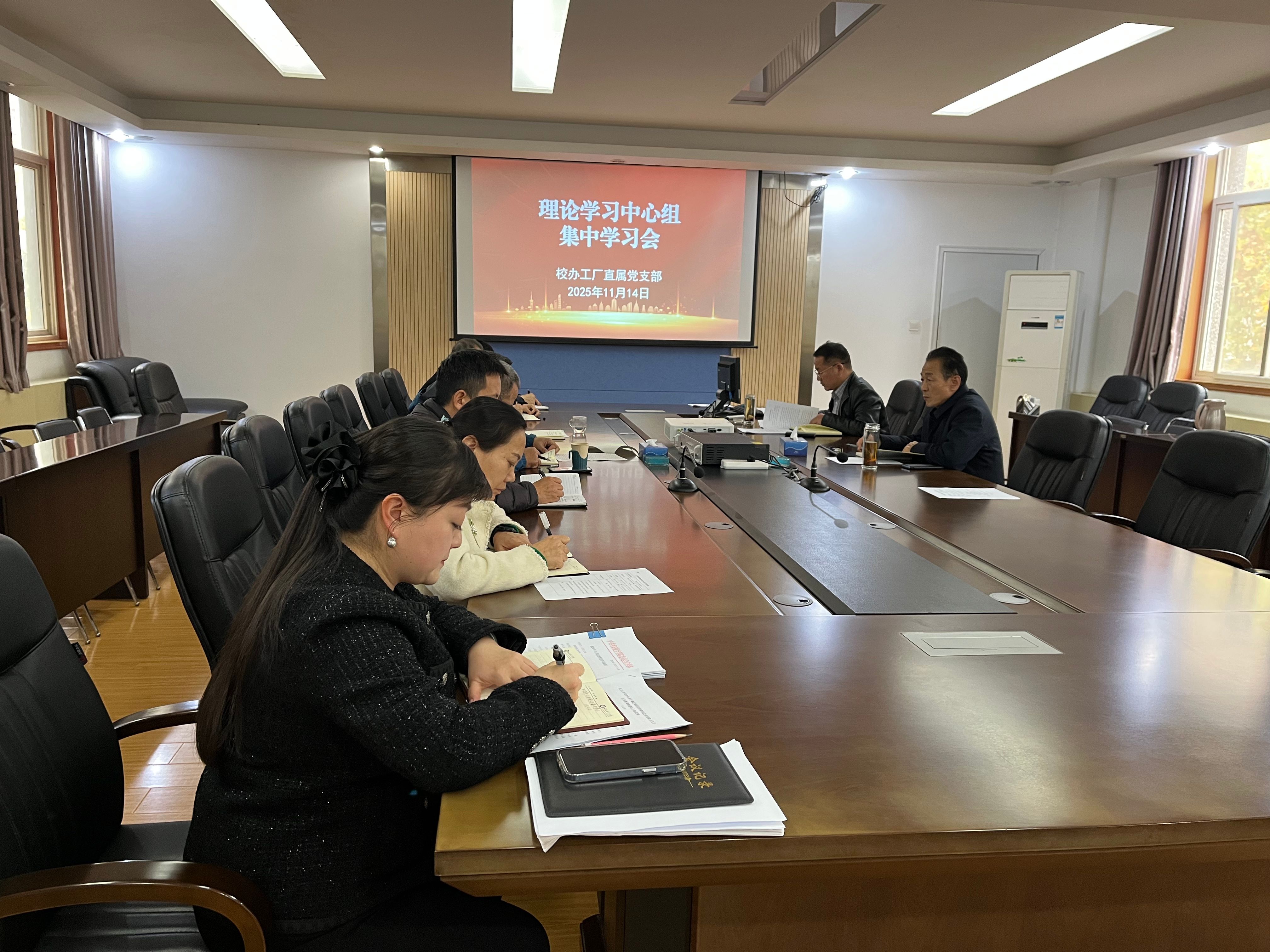 2025年11月14日下午,校办工厂在会议室组织开展11月份中心组集中学习活动、重点学习党的二十届四中全会精神,校党委副书记张昭应邀参加,副厂长尹宏炜、樊万仓,各科室负责人参加学习,会议由厂长周华主持。